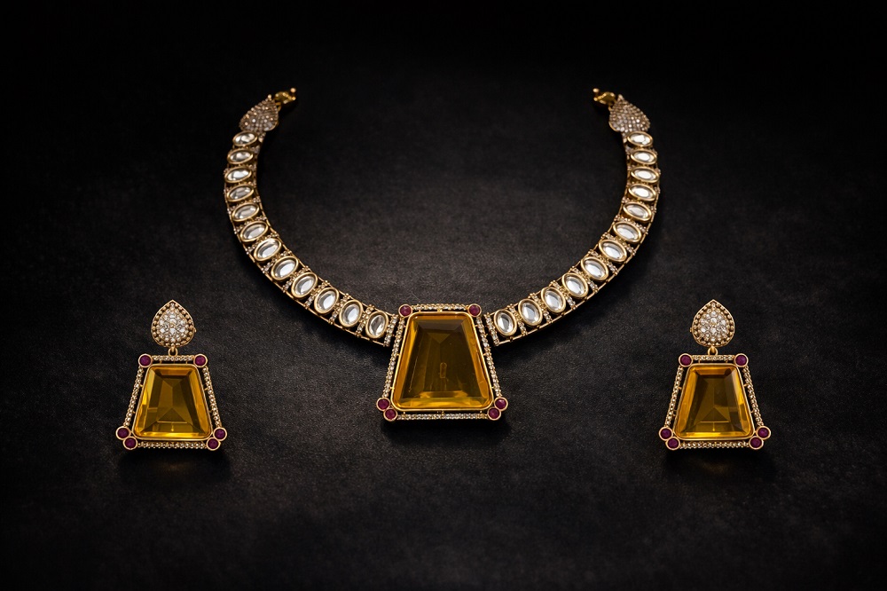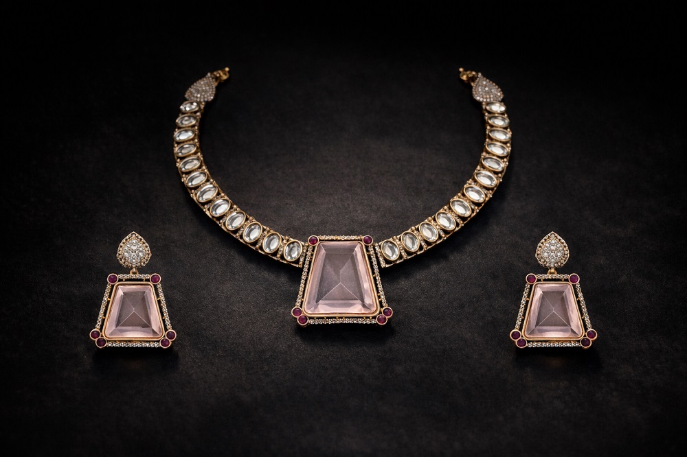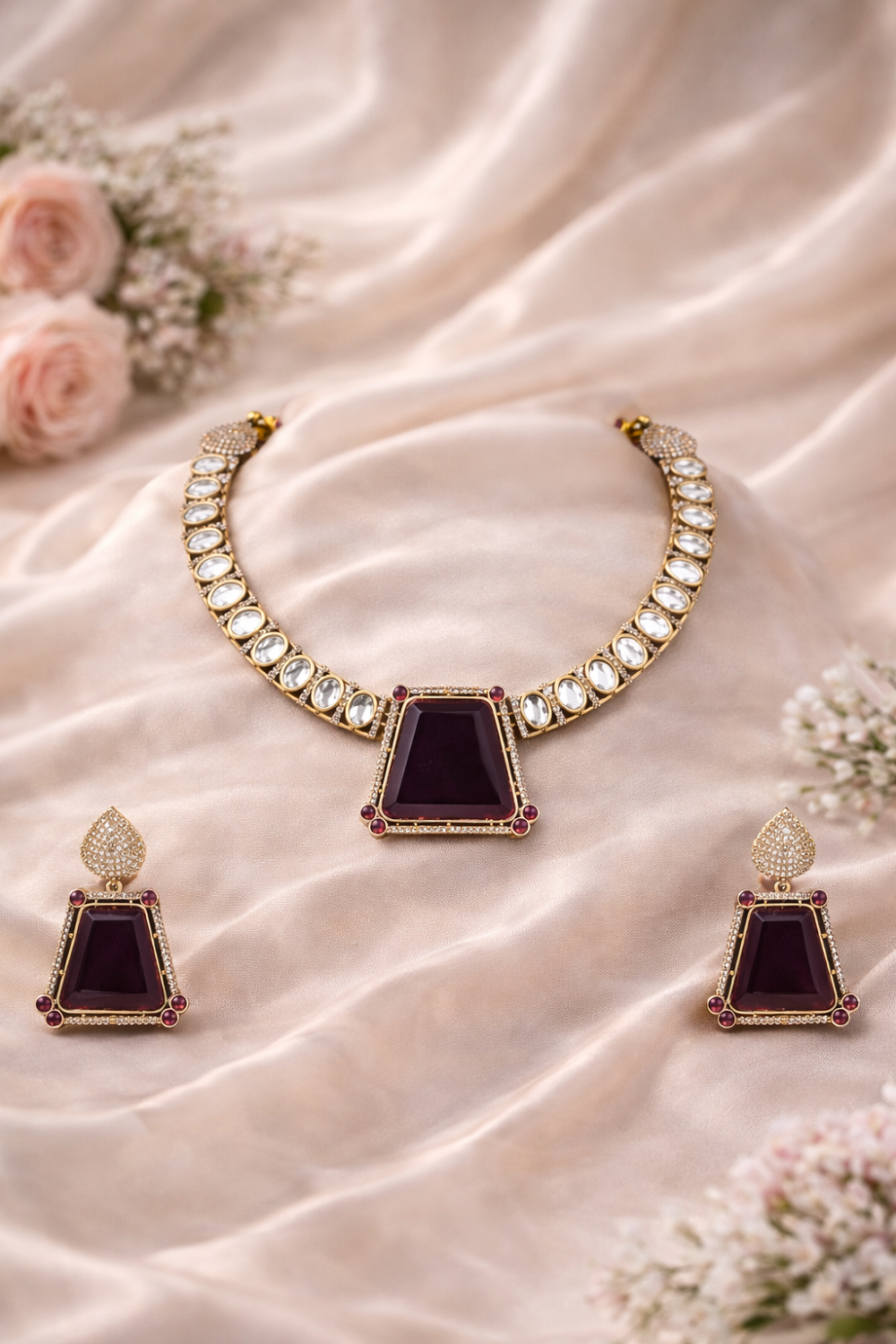 Perfect for premium jewellery collections & online stores A timeless statement piece designed for women who appreciate elegance, tradition, and luxury—this gemstone polki necklace set is a must-have addition to any premium jewellery collection.