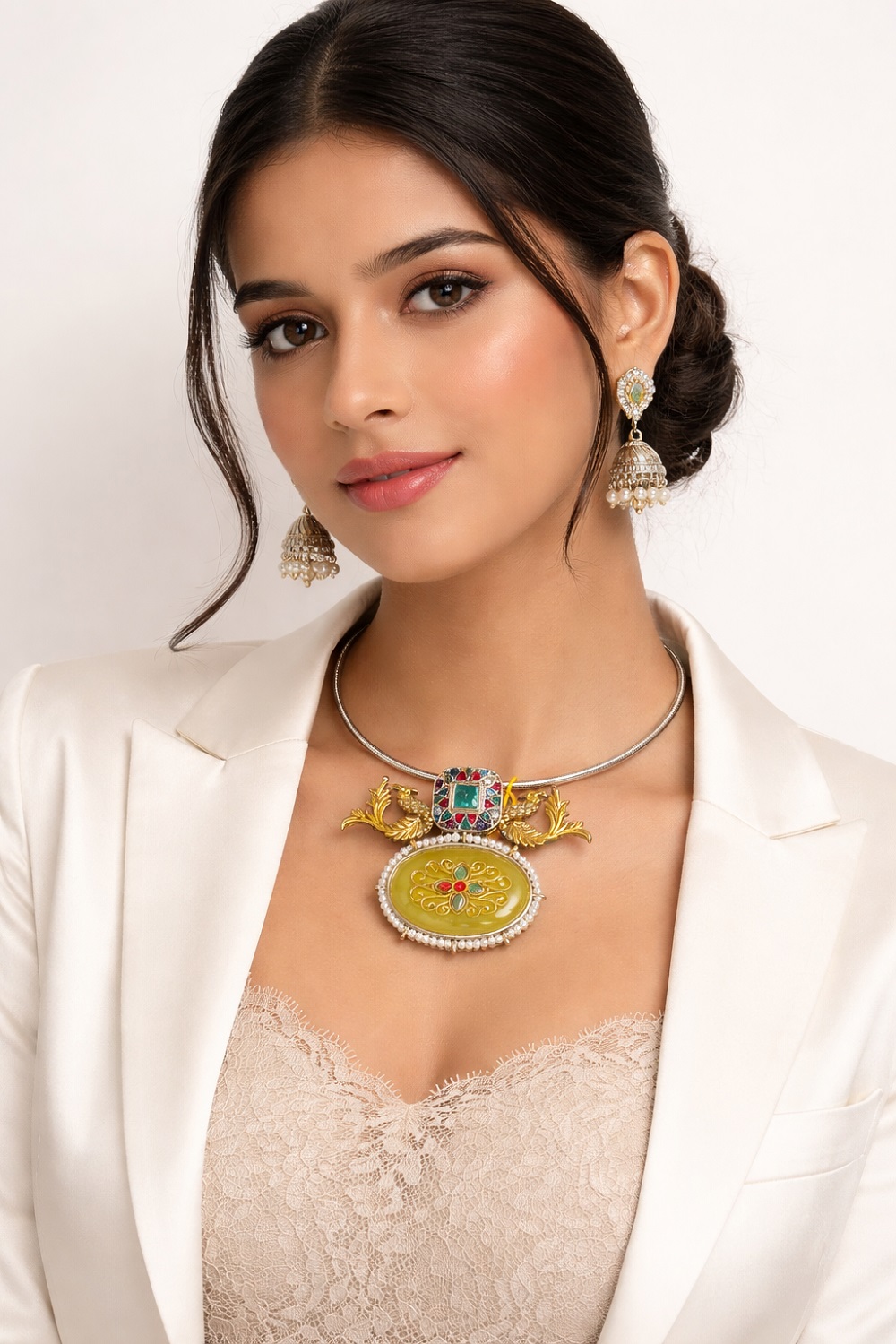 Crafted with precision and comfort, this Hasli sits perfectly on the neckline and instantly elevates your outfits. Whether you’re styling a saree, kurti, Indo-Western set, denim jacket, maxi dress, or festive wear — this versatile jewellery piece matches effortlessly with every mood and outfit.