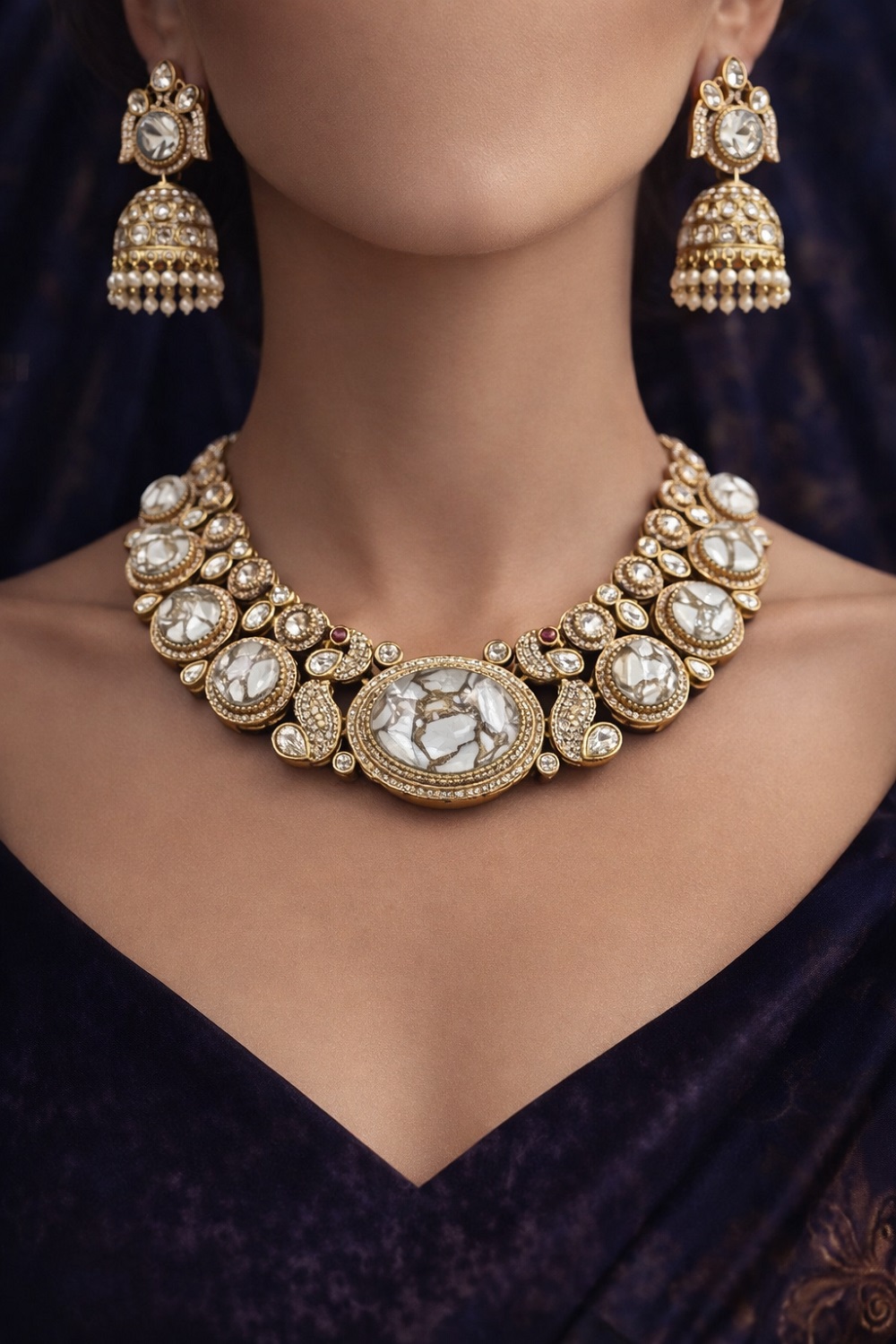 Perfect for women who love minimal glamour with a premium touch, this necklace complements sarees, gowns, kurtis, Indo-Western outfits, party dresses, and festive looks effortlessly. Its versatile style makes it suitable for both casual premium wear and grand celebrations.